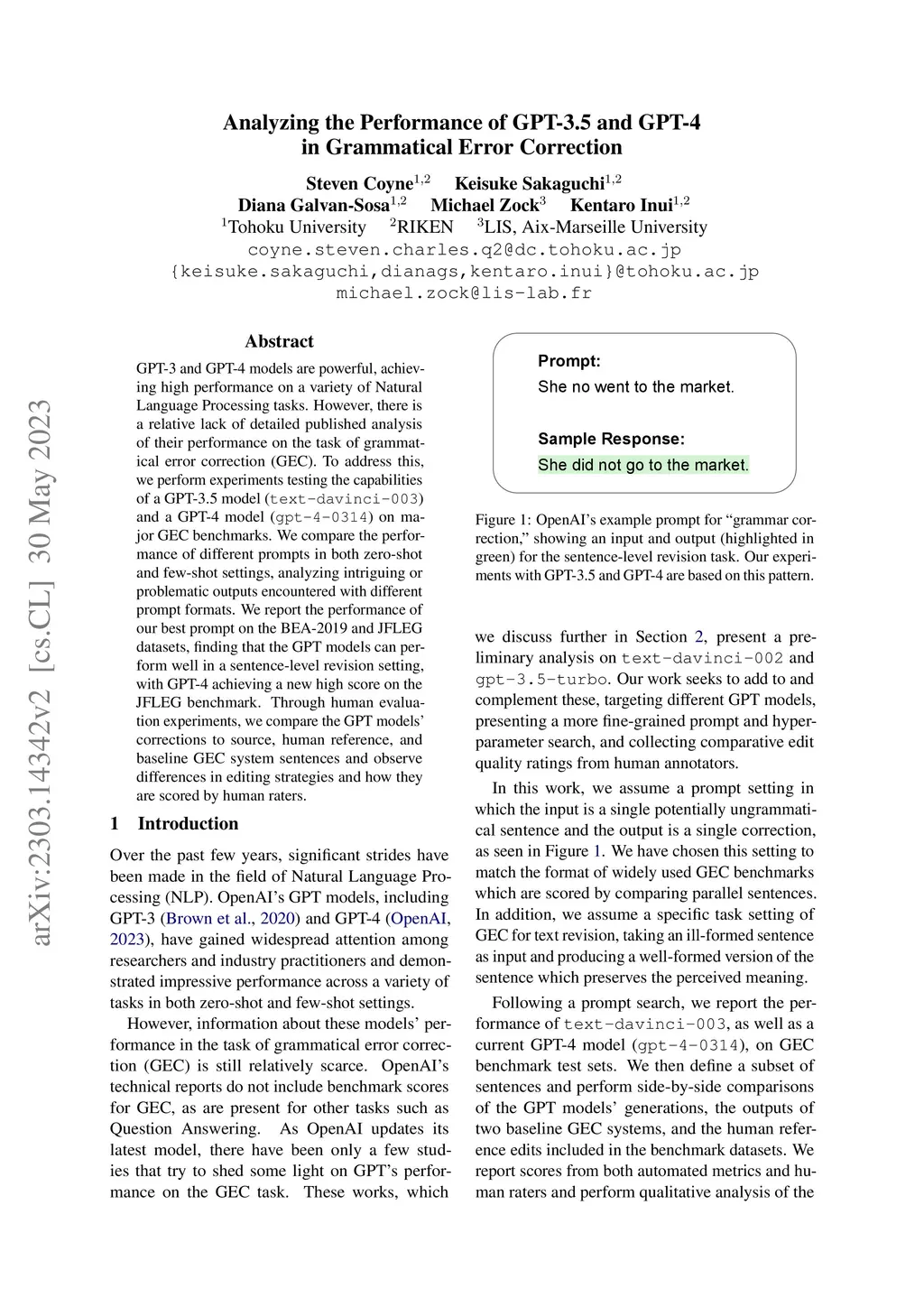 Analyzing the Performance of GPT-3.5 and GPT-4 in Grammatical Error