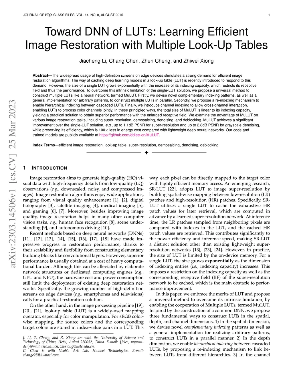 Toward DNN of LUTs: Learning Efficient Image Restoration with Multiple