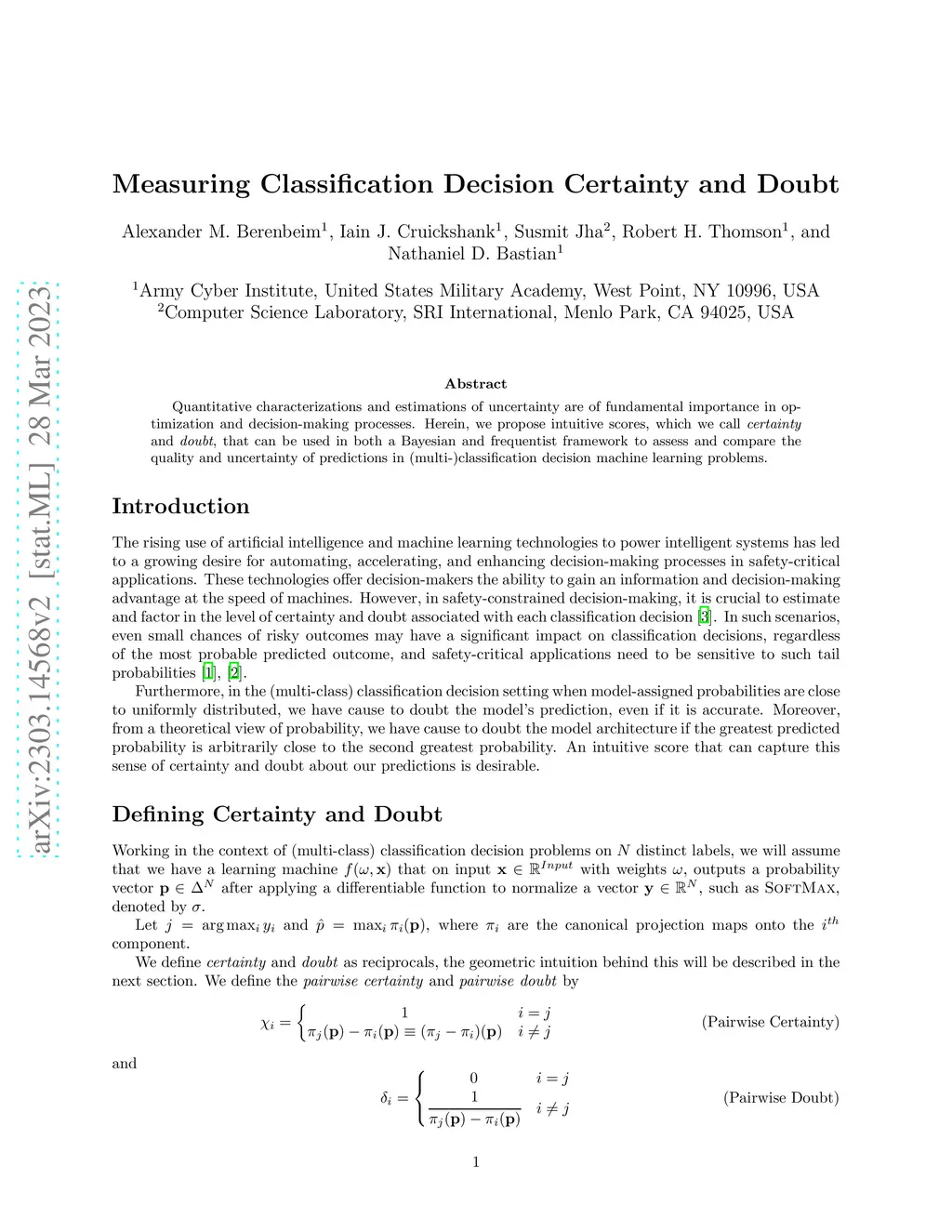 Quantitative characterizations and estimations of uncertainty are of fundamental importance in optimization and decision-making processes. Herein, we propose intuitive scores, which we call certainty and doubt, that can be used in both a Bayesian and frequentist framework to assess and compare the quality and uncertainty of predictions in (multi-)classification decision machine learning problems.