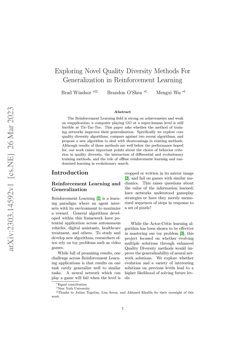 Exploring Novel Quality Diversity Methods For Generalization in