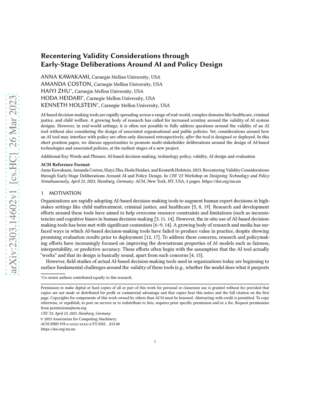 AI-based decision-making tools are rapidly spreading across a range of real-world, complex domains like healthcare, criminal justice, and child welfare. A growing body of research has called for increased scrutiny around the validity of AI system designs. However, in real-world settings, it is often not possible to fully address questions around the validity of an AI tool without also considering the design of associated organizational and public policies. Yet, considerations around how an AI tool may interface with policy are often only discussed retrospectively, after the tool is designed or deployed. In this short position paper, we discuss opportunities to promote multi-stakeholder deliberations around the design of AI-based technologies and associated policies, at the earliest stages of a new project.