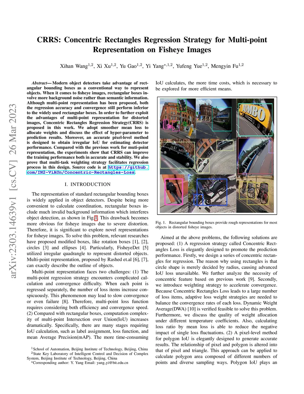 Modern object detectors take advantage of rectangular bounding boxes as a conventional way to represent objects. When it comes to fisheye images, rectangular boxes involve more background noise rather than semantic information. Although multi-point representation has been proposed, both the regression accuracy and convergence still perform inferior to the widely used rectangular boxes. In order to further exploit the advantages of multi-point representation for distorted images, Concentric Rectangles Regression Strategy(CRRS) is proposed in this work. We adopt smoother mean loss to allocate weights and discuss the effect of hyper-parameter to prediction results. Moreover, an accurate pixel-level method is designed to obtain irregular IoU for estimating detector performance. Compared with the previous work for muti-point representation, the experiments show that CRRS can improve the training performance both in accurate and stability. We also prove that multi-task weighting strategy facilitates regression process in this design.