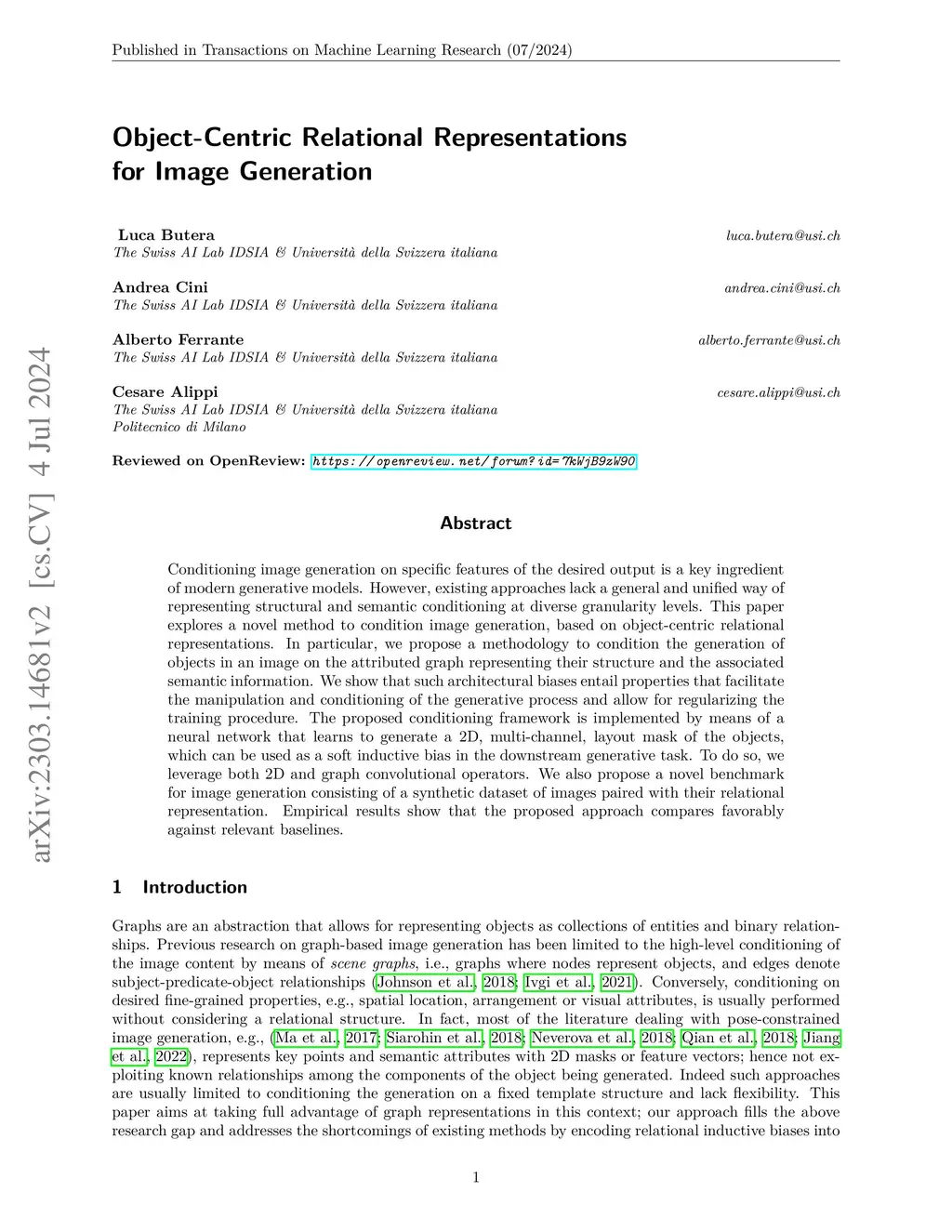 Conditioning image generation on specific features of the desired output is a key ingredient of modern generative models. However, existing approaches lack a general and unified way of representing structural and semantic conditioning at diverse granularity levels. This paper explores a novel method to condition image generation, based on object-centric relational representations. In particular, we propose a methodology to condition the generation of objects in an image on the attributed graph representing their structure and the associated semantic information. We show that such architectural biases entail properties that facilitate the manipulation and conditioning of the generative process and allow for regularizing the training procedure. The proposed conditioning framework is implemented by means of a neural network that learns to generate a 2D, multi-channel, layout mask of the objects, which can be used as a soft inductive bias in the downstream generative task. To do so, we leverage both 2D and graph convolutional operators. We also propose a novel benchmark for image generation consisting of a synthetic dataset of images paired with their relational representation. Empirical results show that the proposed approach compares favorably against relevant baselines.