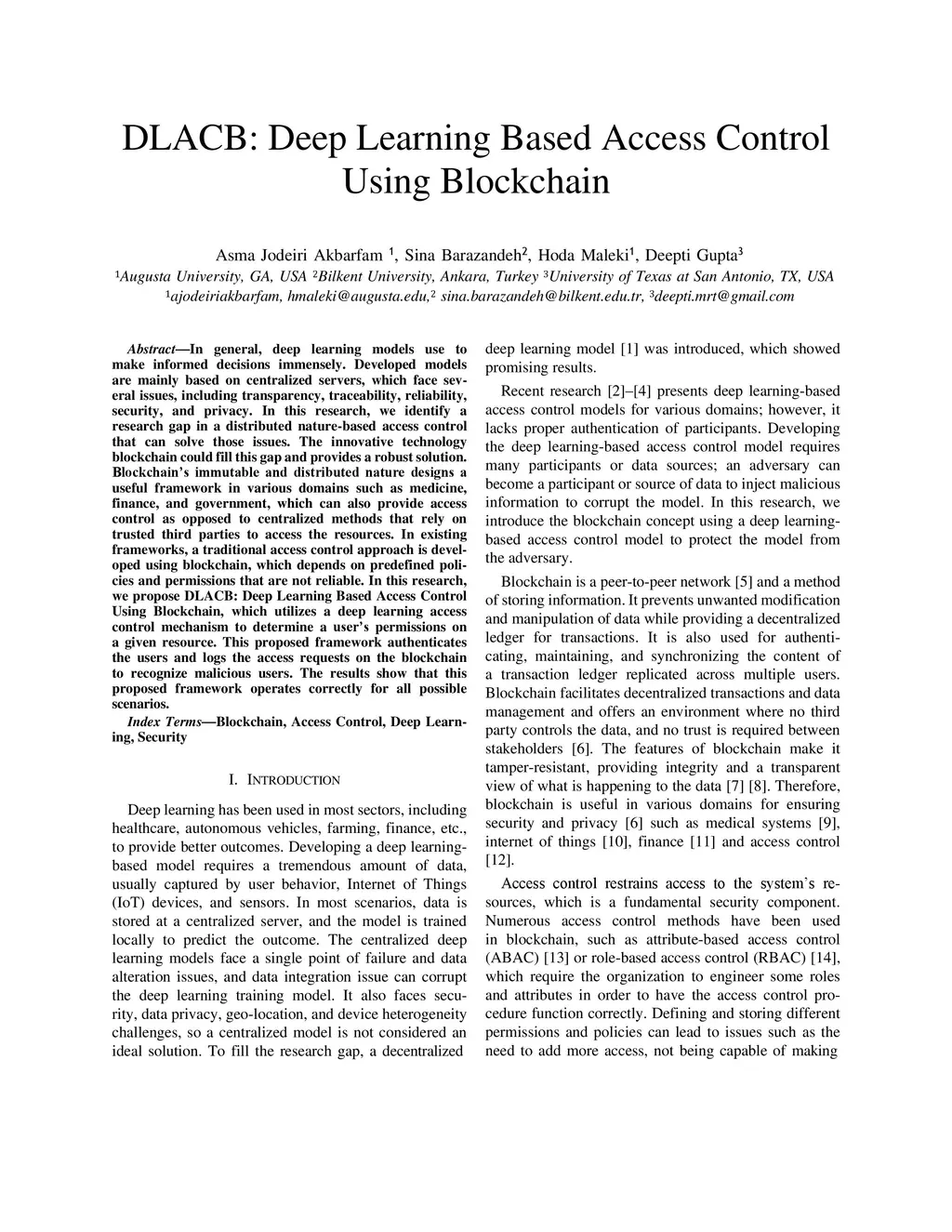 DLACB: Deep Learning Based Access Control Using Blockchain
