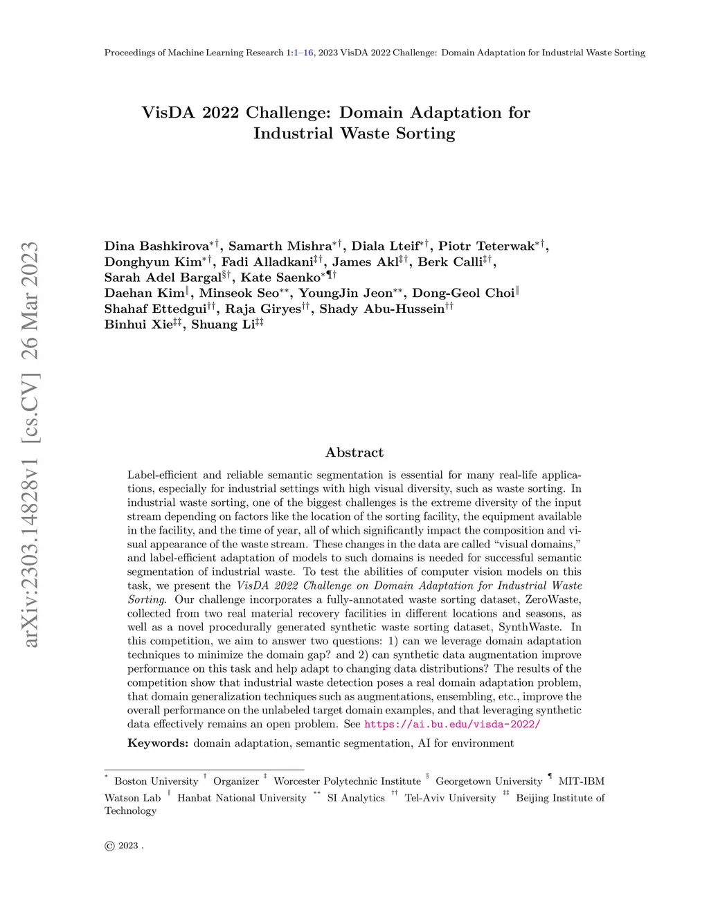 VisDA 2022 Challenge: Domain Adaptation for Industrial Waste Sorting