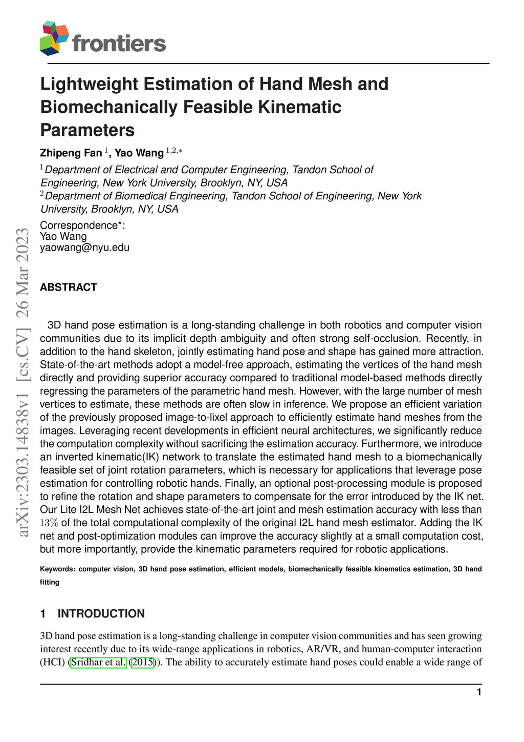 Lightweight Estimation of Hand Mesh and Biomechanically Feasible