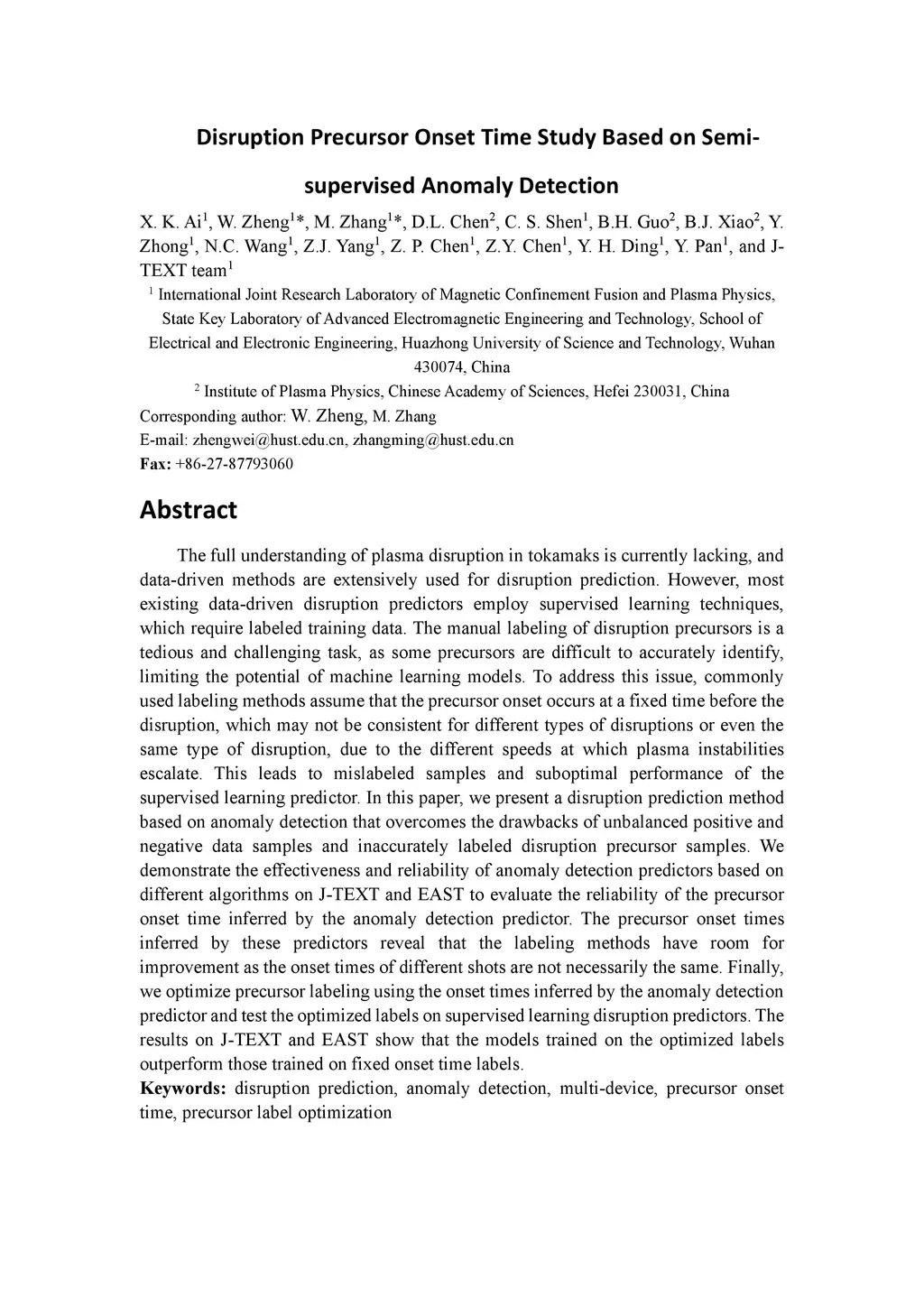 Disruption Precursor Onset Time Study Based on Semi-supervised Anomaly
