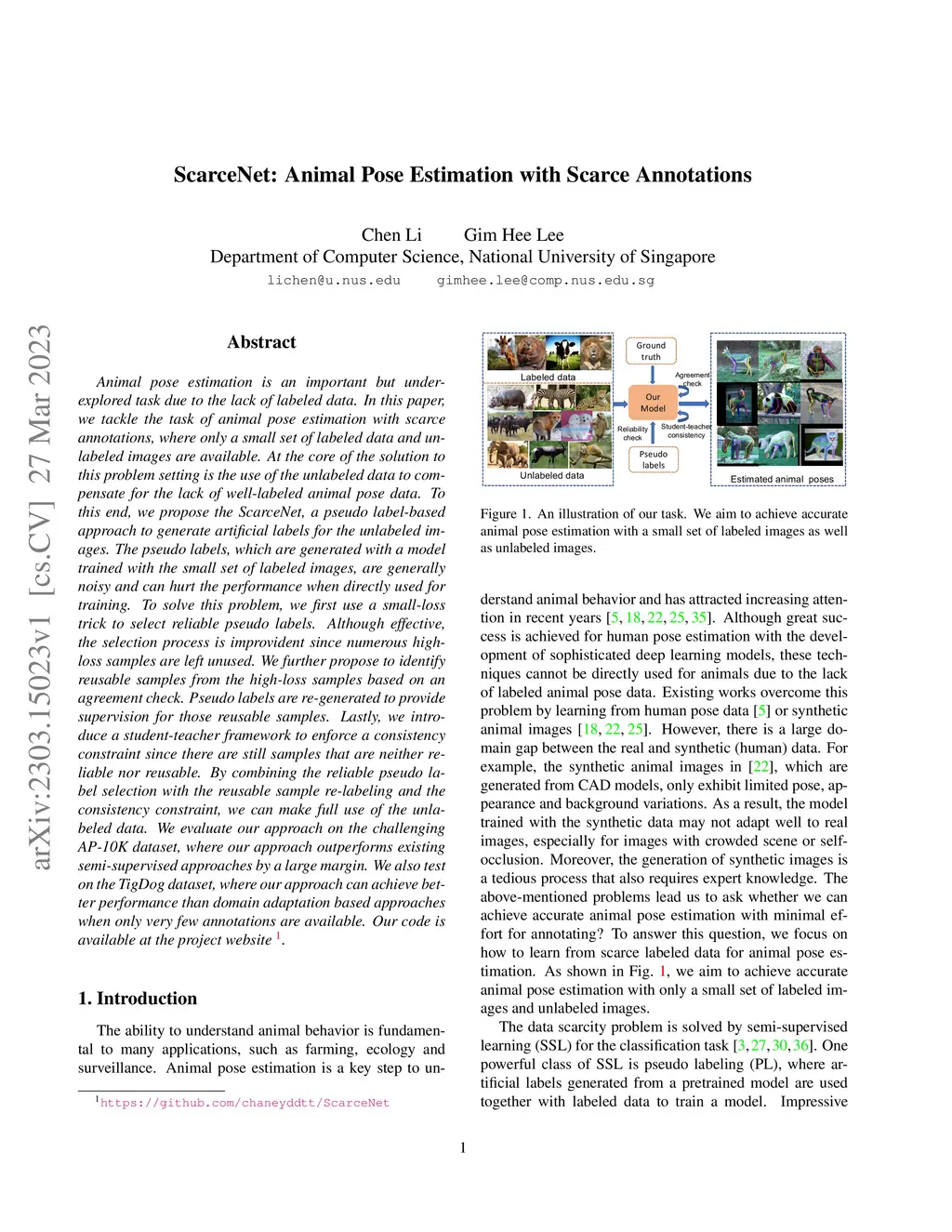 ScarceNet: Animal Pose Estimation with Scarce Annotations