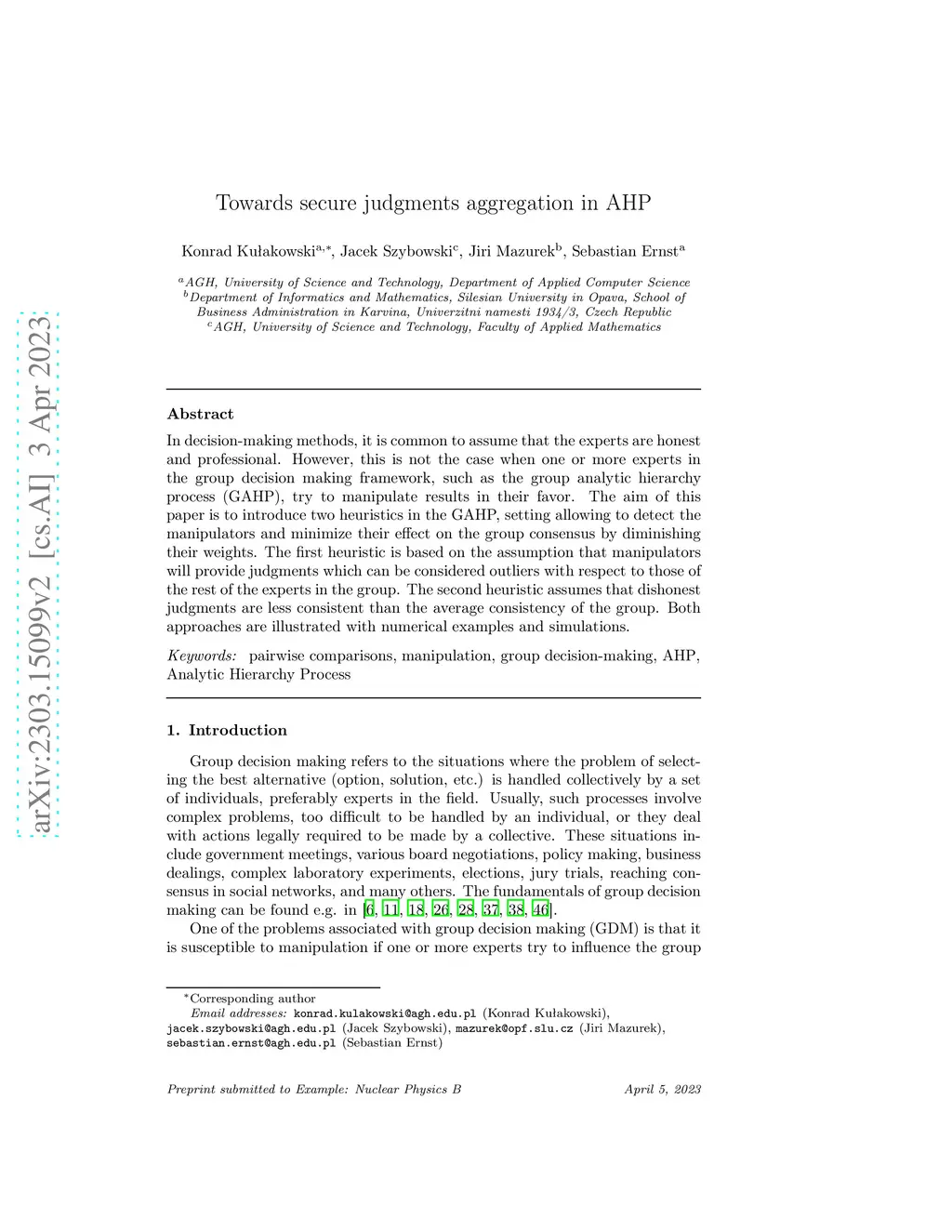 In decision-making methods, it is common to assume that the experts are honest and professional. However, this is not the case when one or more experts in the group decision making framework, such as the group analytic hierarchy process (GAHP), try to manipulate results in their favor. The aim of this paper is to introduce two heuristics in the GAHP, setting allowing to detect the manipulators and minimize their effect on the group consensus by diminishing their weights. The first heuristic is based on the assumption that manipulators will provide judgments which can be considered outliers with respect to those of the rest of the experts in the group. The second heuristic assumes that dishonest judgments are less consistent than the average consistency of the group. Both approaches are illustrated with numerical examples and simulations.