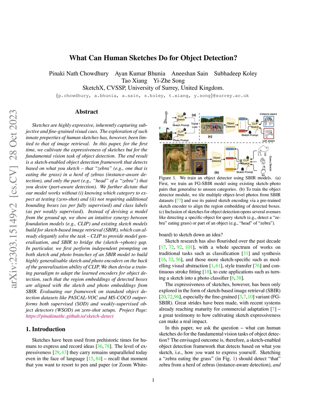 Sketches are highly expressive, inherently capturing subjective and fine-grained visual cues. The exploration of such innate properties of human sketches has, however, been limited to that of image retrieval. In this paper, for the first time, we cultivate the expressiveness of sketches but for the fundamental vision task of object detection. The end result is a sketch-enabled object detection framework that detects based on what \textit{you} sketch -- \textit{that} ``zebra'' (e.g., one that is eating the grass) in a herd of zebras (instance-aware detection), and only the \textit{part} (e.g., ``head" of a ``zebra") that you desire (part-aware detection). We further dictate that our model works without (i) knowing which category to expect at testing (zero-shot) and (ii) not requiring additional bounding boxes (as per fully supervised) and class labels (as per weakly supervised). Instead of devising a model from the ground up, we show an intuitive synergy between foundation models (e.g., CLIP) and existing sketch models build for sketch-based image retrieval (SBIR), which can already elegantly solve the task -- CLIP to provide model generalisation, and SBIR to bridge the (sketchphoto) gap. In particular, we first perform independent prompting on both sketch and photo branches of an SBIR model to build highly generalisable sketch and photo encoders on the back of the generalisation ability of CLIP. We then devise a training paradigm to adapt the learned encoders for object detection, such that the region embeddings of detected boxes are aligned with the sketch and photo embeddings from SBIR. Evaluating our framework on standard object detection datasets like PASCAL-VOC and MS-COCO outperforms both supervised (SOD) and weakly-supervised object detectors (WSOD) on zero-shot setups. Project Page: \url{https://pinakinathc.github.io/sketch-detect}