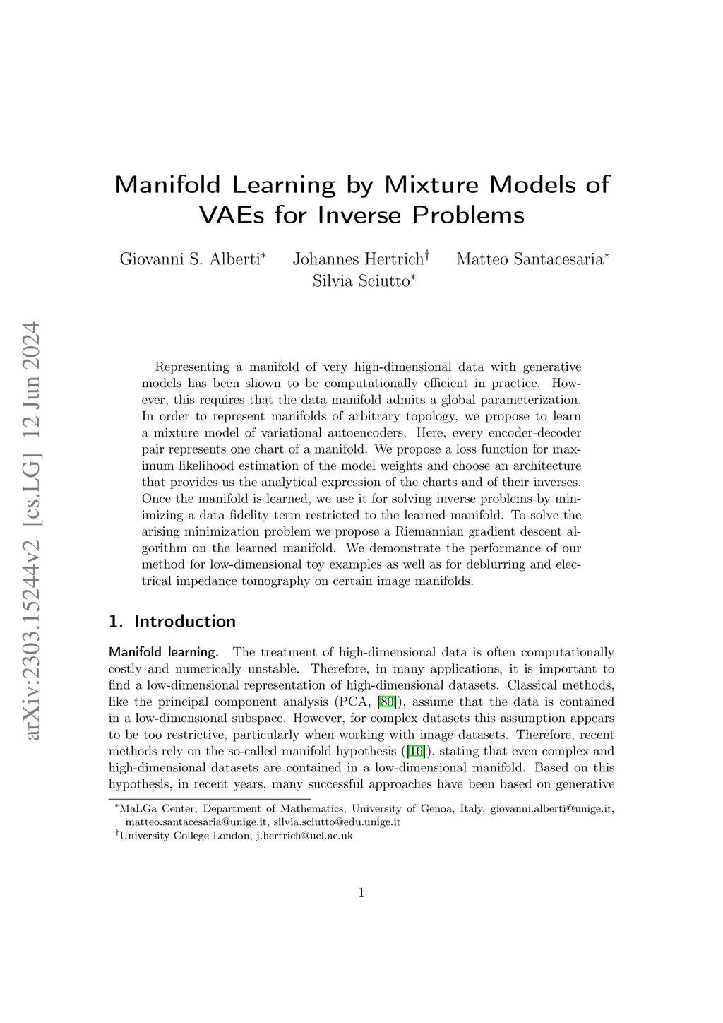 Manifold Learning by Mixture Models of VAEs for Inverse Problems