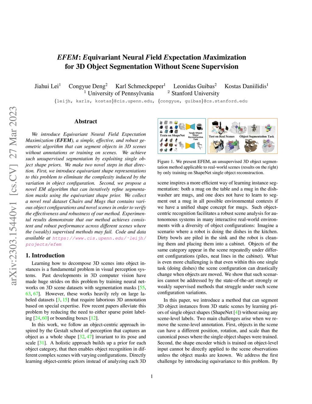 EFEM: Equivariant Neural Field Expectation Maximization for 3D Object