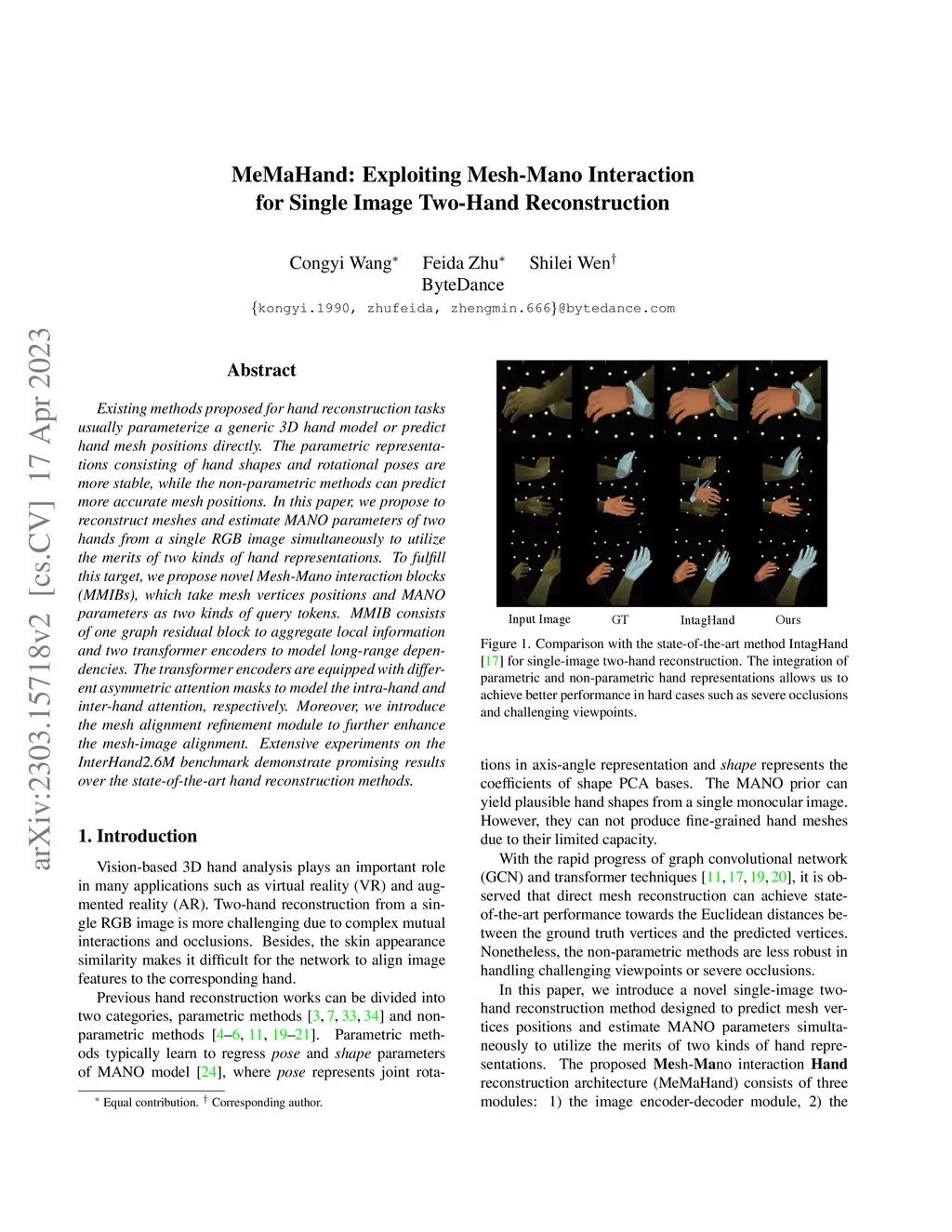 MeMaHand: Exploiting Mesh-Mano Interaction for Single Image Two-Hand