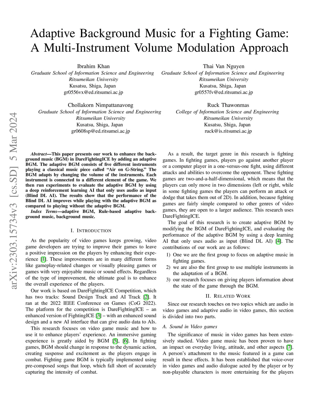 Adaptive Background Music for a Fighting Game: A Multi-Instrument Volume