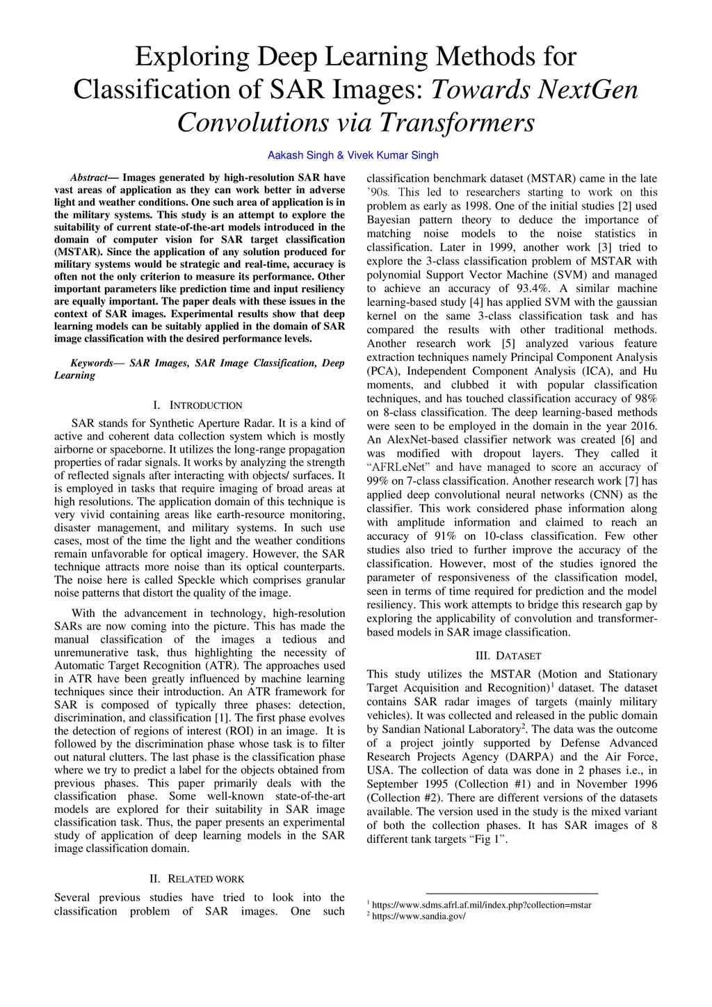Exploring Deep Learning Methods for Classification of SAR Images: