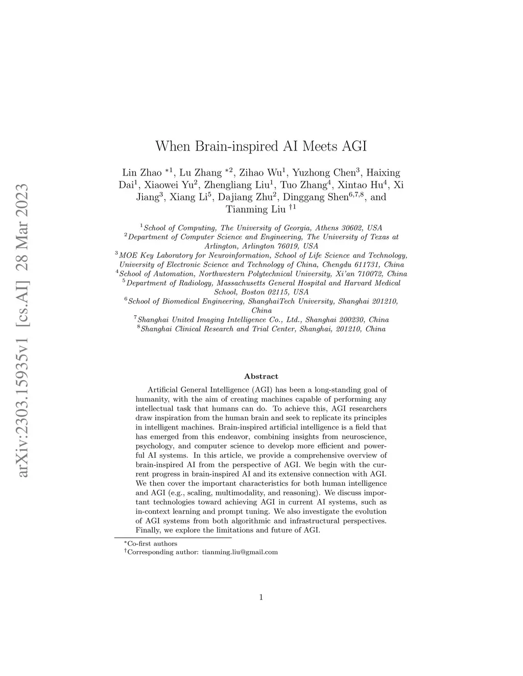 Artificial General Intelligence (AGI) has been a long-standing goal of humanity, with the aim of creating machines capable of performing any intellectual task that humans can do. To achieve this, AGI researchers draw inspiration from the human brain and seek to replicate its principles in intelligent machines. Brain-inspired artificial intelligence is a field that has emerged from this endeavor, combining insights from neuroscience, psychology, and computer science to develop more efficient and powerful AI systems. In this article, we provide a comprehensive overview of brain-inspired AI from the perspective of AGI. We begin with the current progress in brain-inspired AI and its extensive connection with AGI. We then cover the important characteristics for both human intelligence and AGI (e.g., scaling, multimodality, and reasoning). We discuss important technologies toward achieving AGI in current AI systems, such as in-context learning and prompt tuning. We also investigate the evolution of AGI systems from both algorithmic and infrastructural perspectives. Finally, we explore the limitations and future of AGI.