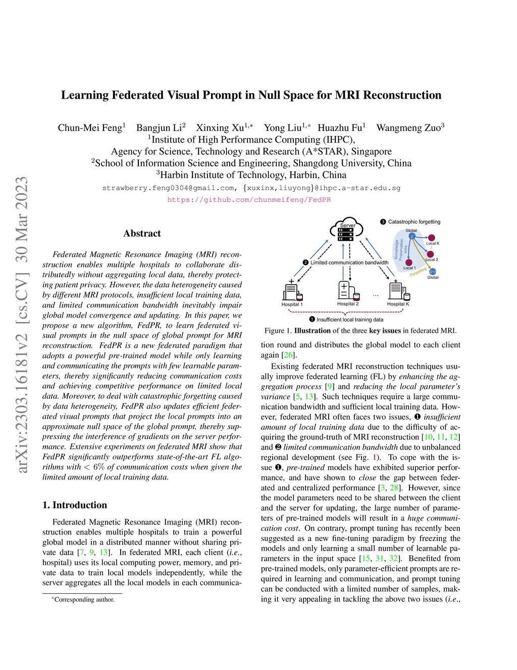 Learning Federated Visual Prompt in Null Space for MRI Reconstruction