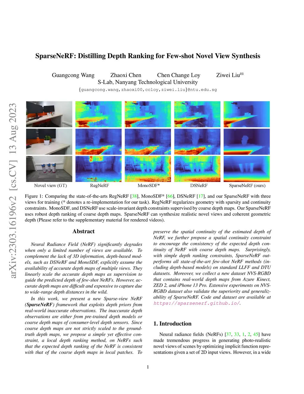 SparseNeRF: Distilling Depth Ranking for Few-shot Novel View Synthesis
