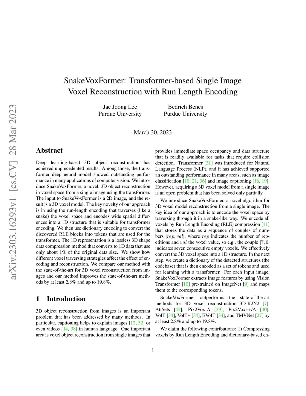 SnakeVoxFormer: Transformer-based Single Image\\Voxel Reconstruction