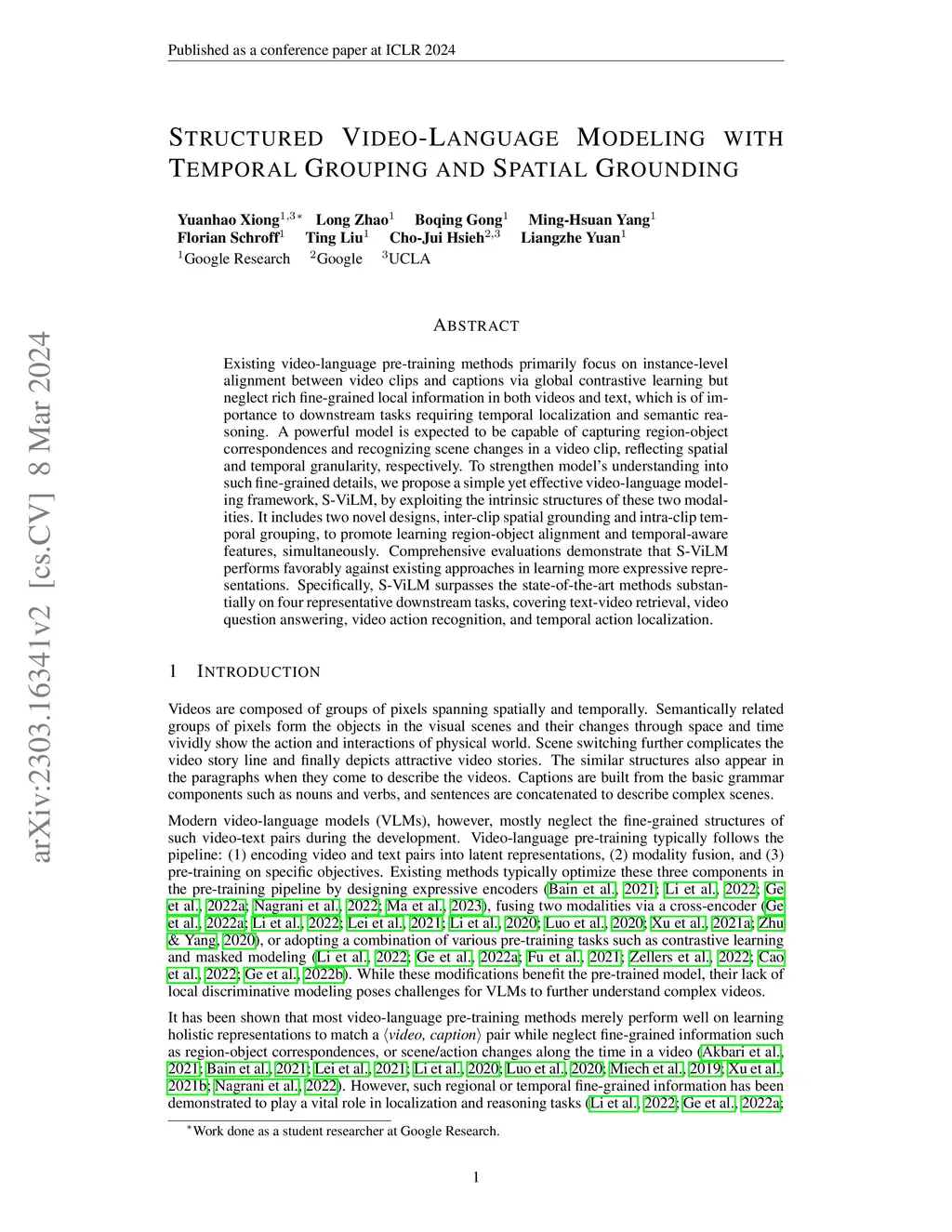 Structured Video-Language Modeling with Temporal Grouping and Spatial