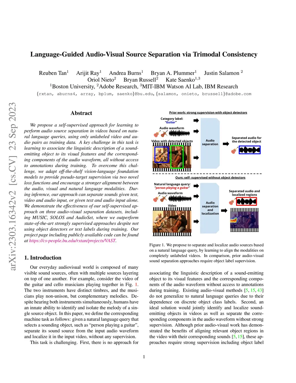 Language-Guided Audio-Visual Source Separation via Trimodal Consistency