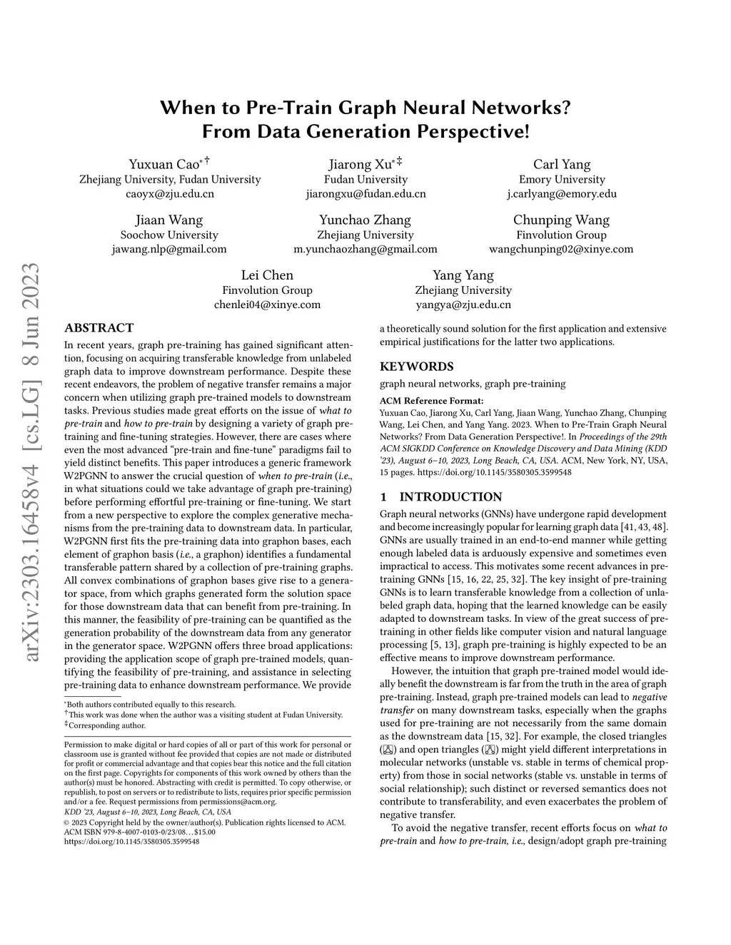 In recent years, graph pre-training has gained significant attention, focusing on acquiring transferable knowledge from unlabeled graph data to improve downstream performance. Despite these recent endeavors, the problem of negative transfer remains a major concern when utilizing graph pre-trained models to downstream tasks. Previous studies made great efforts on the issue of what to pre-train and how to pre-train by designing a variety of graph pre-training and fine-tuning strategies. However, there are cases where even the most advanced "pre-train and fine-tune" paradigms fail to yield distinct benefits. This paper introduces a generic framework W2PGNN to answer the crucial question of when to pre-train (i.e., in what situations could we take advantage of graph pre-training) before performing effortful pre-training or fine-tuning. We start from a new perspective to explore the complex generative mechanisms from the pre-training data to downstream data. In particular, W2PGNN first fits the pre-training data into graphon bases, each element of graphon basis (i.e., a graphon) identifies a fundamental transferable pattern shared by a collection of pre-training graphs. All convex combinations of graphon bases give rise to a generator space, from which graphs generated form the solution space for those downstream data that can benefit from pre-training. In this manner, the feasibility of pre-training can be quantified as the generation probability of the downstream data from any generator in the generator space. W2PGNN offers three broad applications: providing the application scope of graph pre-trained models, quantifying the feasibility of pre-training, and assistance in selecting pre-training data to enhance downstream performance. We provide a theoretically sound solution for the first application and extensive empirical justifications for the latter two applications.