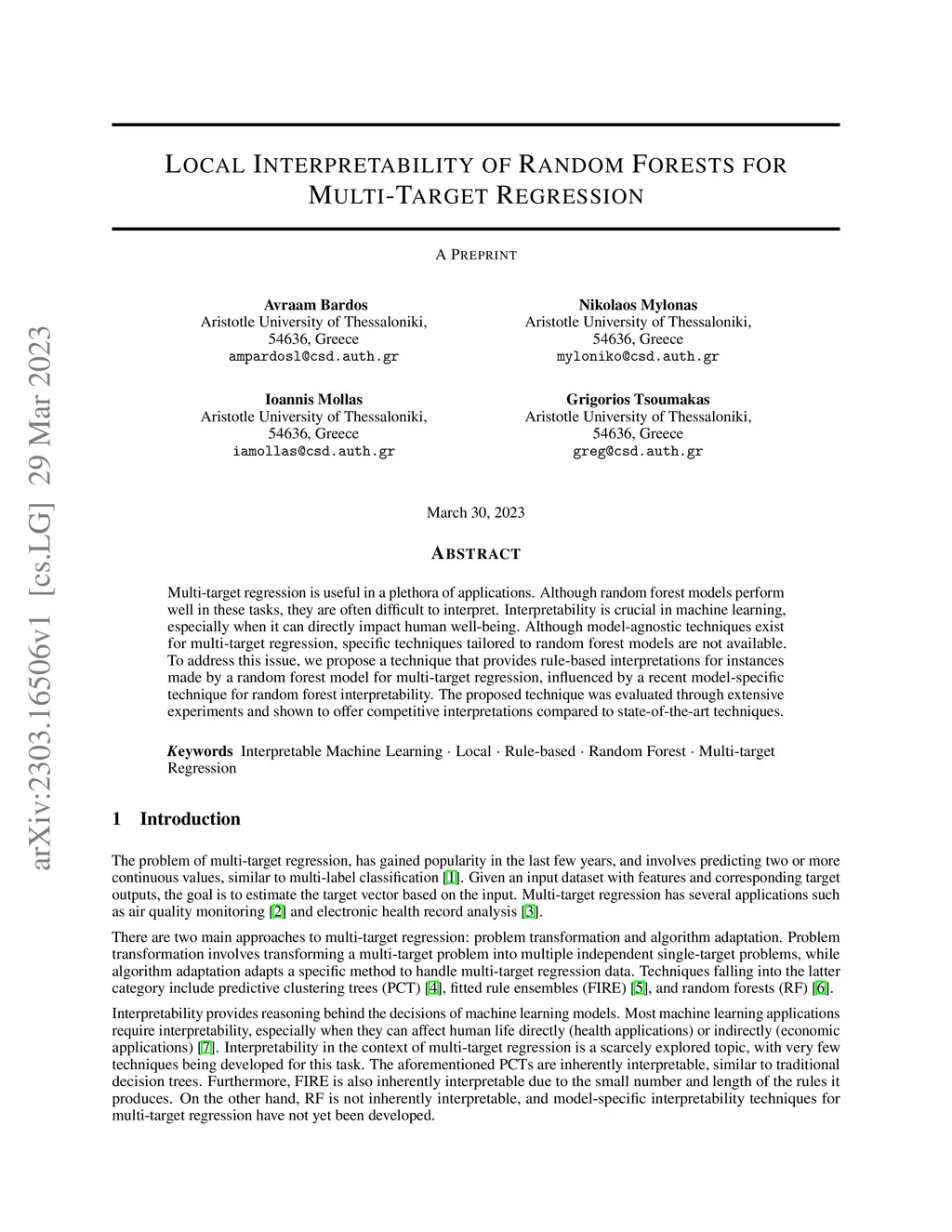 Multi-target regression is useful in a plethora of applications. Although random forest models perform well in these tasks, they are often difficult to interpret. Interpretability is crucial in machine learning, especially when it can directly impact human well-being. Although model-agnostic techniques exist for multi-target regression, specific techniques tailored to random forest models are not available. To address this issue, we propose a technique that provides rule-based interpretations for instances made by a random forest model for multi-target regression, influenced by a recent model-specific technique for random forest interpretability. The proposed technique was evaluated through extensive experiments and shown to offer competitive interpretations compared to state-of-the-art techniques.