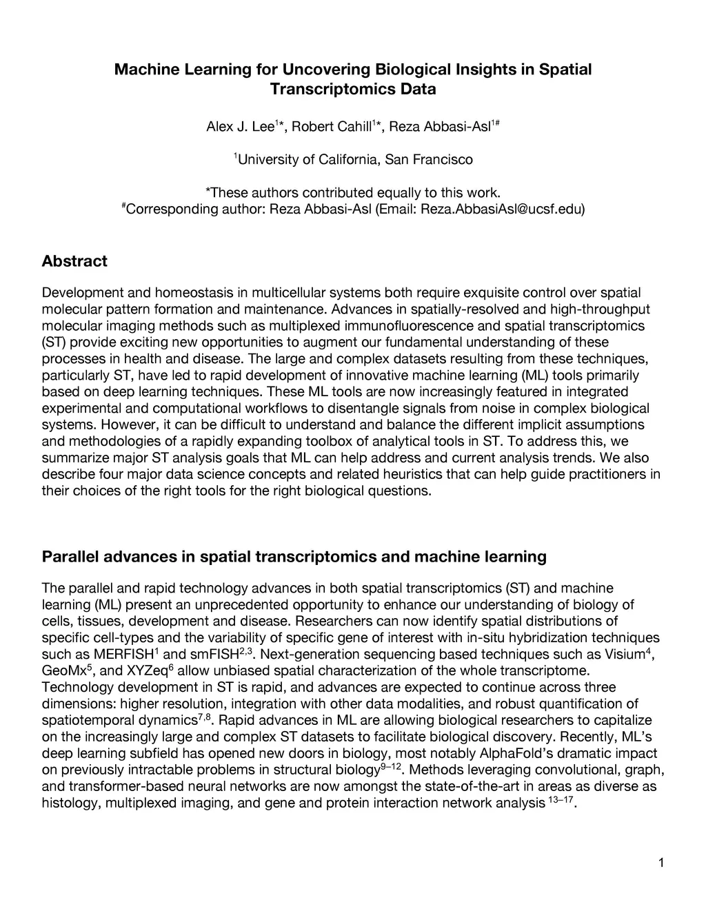Development and homeostasis in multicellular systems both require exquisite control over spatial molecular pattern formation and maintenance. Advances in spatially-resolved and high-throughput molecular imaging methods such as multiplexed immunofluorescence and spatial transcriptomics (ST) provide exciting new opportunities to augment our fundamental understanding of these processes in health and disease. The large and complex datasets resulting from these techniques, particularly ST, have led to rapid development of innovative machine learning (ML) tools primarily based on deep learning techniques. These ML tools are now increasingly featured in integrated experimental and computational workflows to disentangle signals from noise in complex biological systems. However, it can be difficult to understand and balance the different implicit assumptions and methodologies of a rapidly expanding toolbox of analytical tools in ST. To address this, we summarize major ST analysis goals that ML can help address and current analysis trends. We also describe four major data science concepts and related heuristics that can help guide practitioners in their choices of the right tools for the right biological questions.