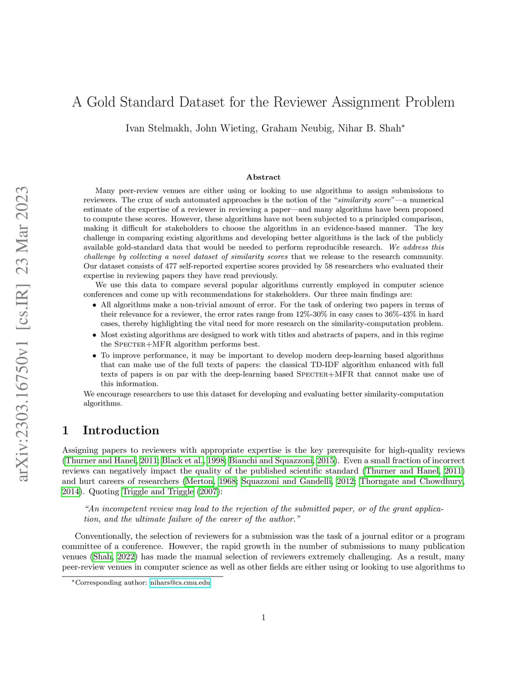A Gold Standard Dataset for the Reviewer Assignment Problem