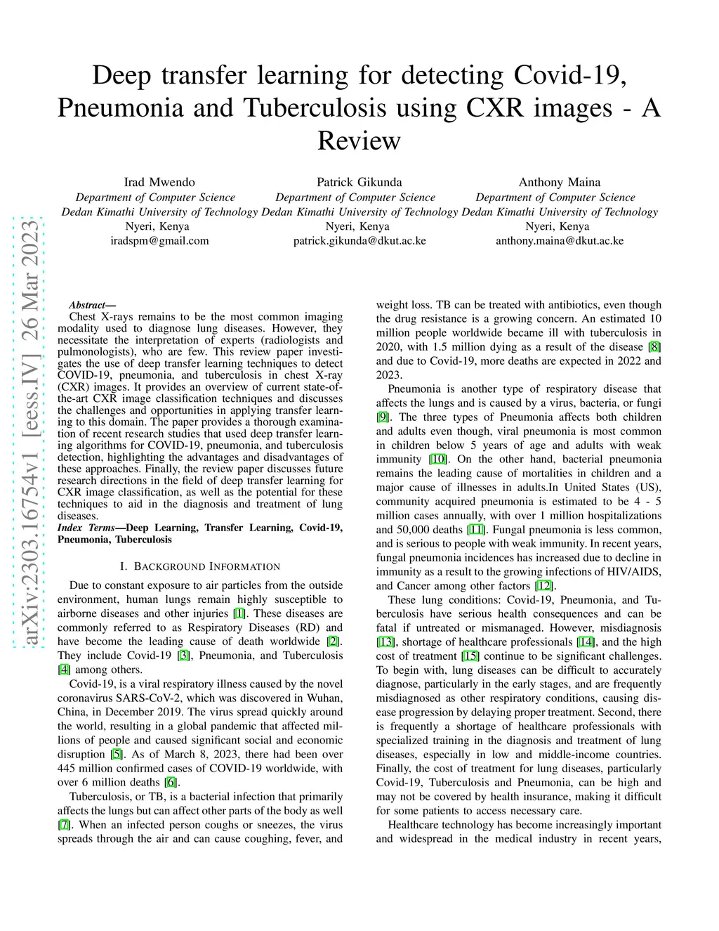 Chest X-rays remains to be the most common imaging modality used to diagnose lung diseases. However, they necessitate the interpretation of experts (radiologists and pulmonologists), who are few. This review paper investigates the use of deep transfer learning techniques to detect COVID-19, pneumonia, and tuberculosis in chest X-ray (CXR) images. It provides an overview of current state-of-the-art CXR image classification techniques and discusses the challenges and opportunities in applying transfer learning to this domain. The paper provides a thorough examination of recent research studies that used deep transfer learning algorithms for COVID-19, pneumonia, and tuberculosis detection, highlighting the advantages and disadvantages of these approaches. Finally, the review paper discusses future research directions in the field of deep transfer learning for CXR image classification, as well as the potential for these techniques to aid in the diagnosis and treatment of lung diseases.