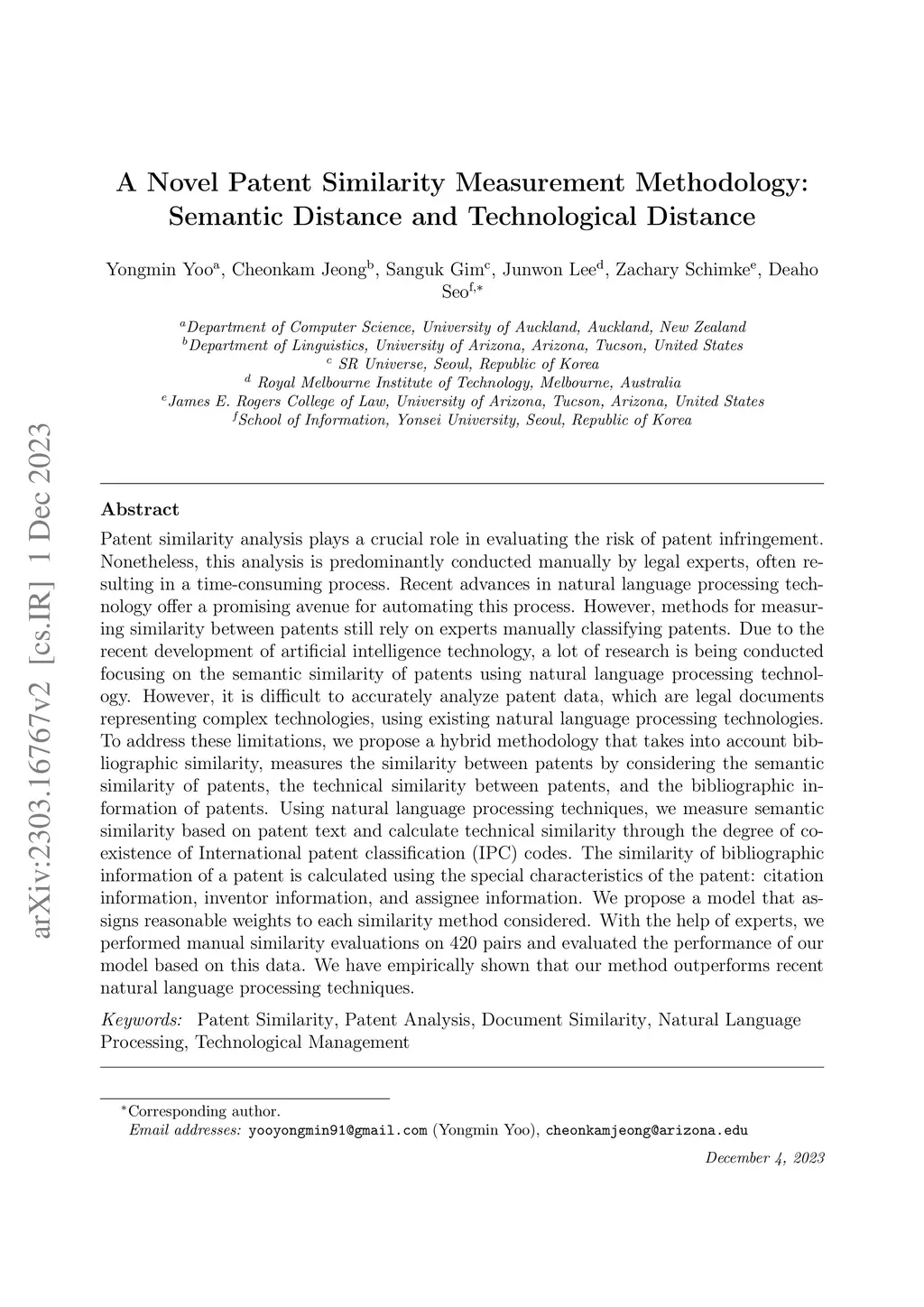 A Novel Patent Similarity Measurement Methodology: Semantic Distance and