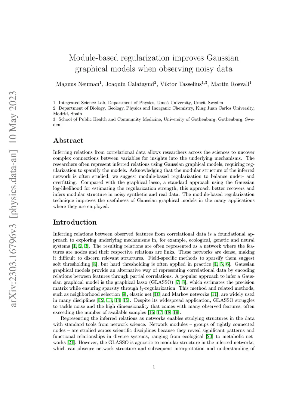 Inferring relations from correlational data allows researchers across the sciences to uncover complex connections between variables for insights into the underlying mechanisms. The researchers often represent inferred relations using Gaussian graphical models, requiring regularization to sparsify the models. Acknowledging that the modular structure of the inferred network is often studied, we suggest module-based regularization to balance under- and overfitting. Compared with the graphical lasso, a standard approach using the Gaussian log-likelihood for estimating the regularization strength, this approach better recovers and infers modular structure in noisy synthetic and real data. The module-based regularization technique improves the usefulness of Gaussian graphical models in the many applications where they are employed.