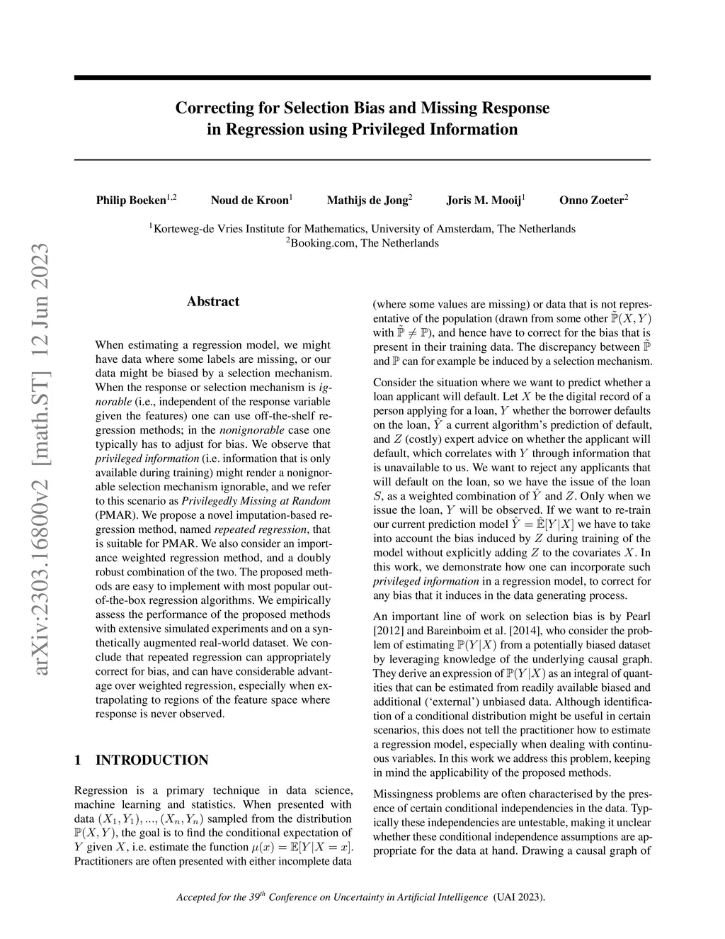 When estimating a regression model, we might have data where some labels are missing, or our data might be biased by a selection mechanism. When the response or selection mechanism is ignorable (i.e., independent of the response variable given the features) one can use off-the-shelf regression methods; in the nonignorable case one typically has to adjust for bias. We observe that privileged information (i.e. information that is only available during training) might render a nonignorable selection mechanism ignorable, and we refer to this scenario as Privilegedly Missing at Random (PMAR). We propose a novel imputation-based regression method, named repeated regression, that is suitable for PMAR. We also consider an importance weighted regression method, and a doubly robust combination of the two. The proposed methods are easy to implement with most popular out-of-the-box regression algorithms. We empirically assess the performance of the proposed methods with extensive simulated experiments and on a synthetically augmented real-world dataset. We conclude that repeated regression can appropriately correct for bias, and can have considerable advantage over weighted regression, especially when extrapolating to regions of the feature space where response is never observed.