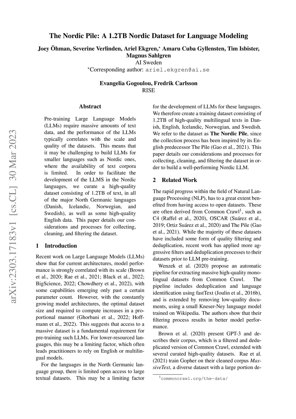 The Nordic Pile: A 1.2TB Nordic Dataset for Language Modeling