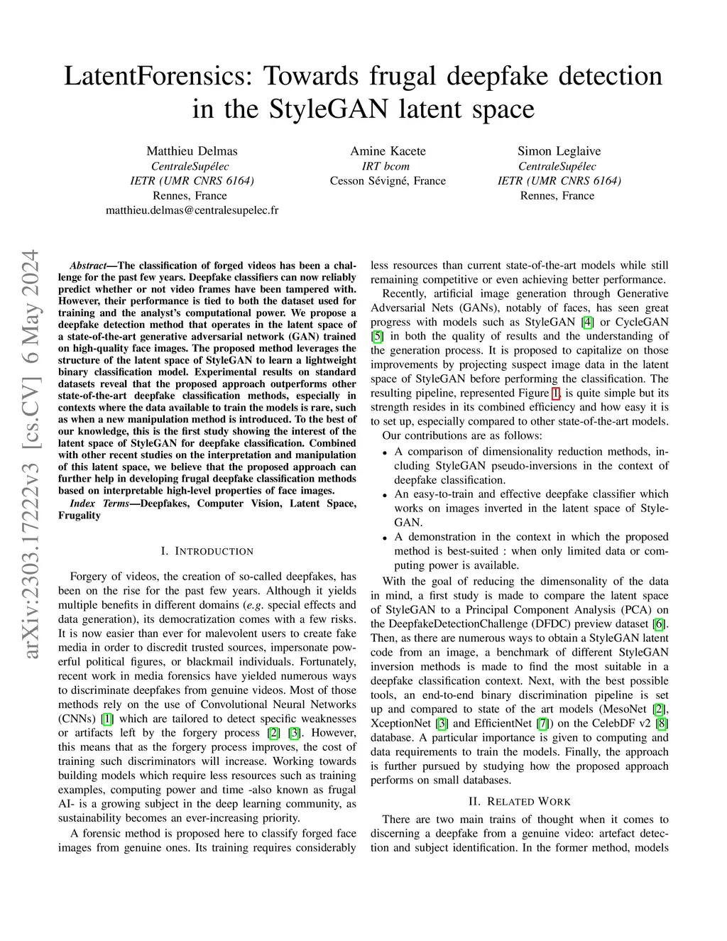 LatentForensics: Towards frugal deepfake detection in the StyleGAN latent space