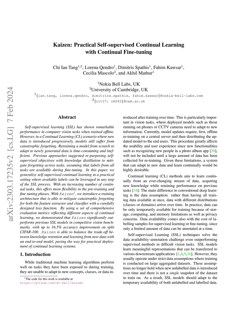 Kaizen: Practical Self-supervised Continual Learning with Continual