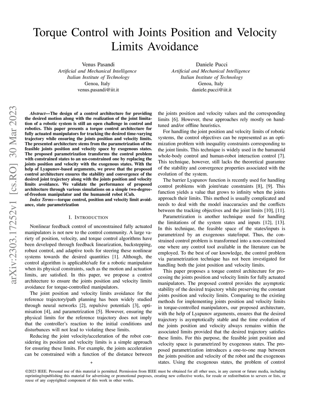 Torque Control with Joints Position and Velocity Limits Avoidance