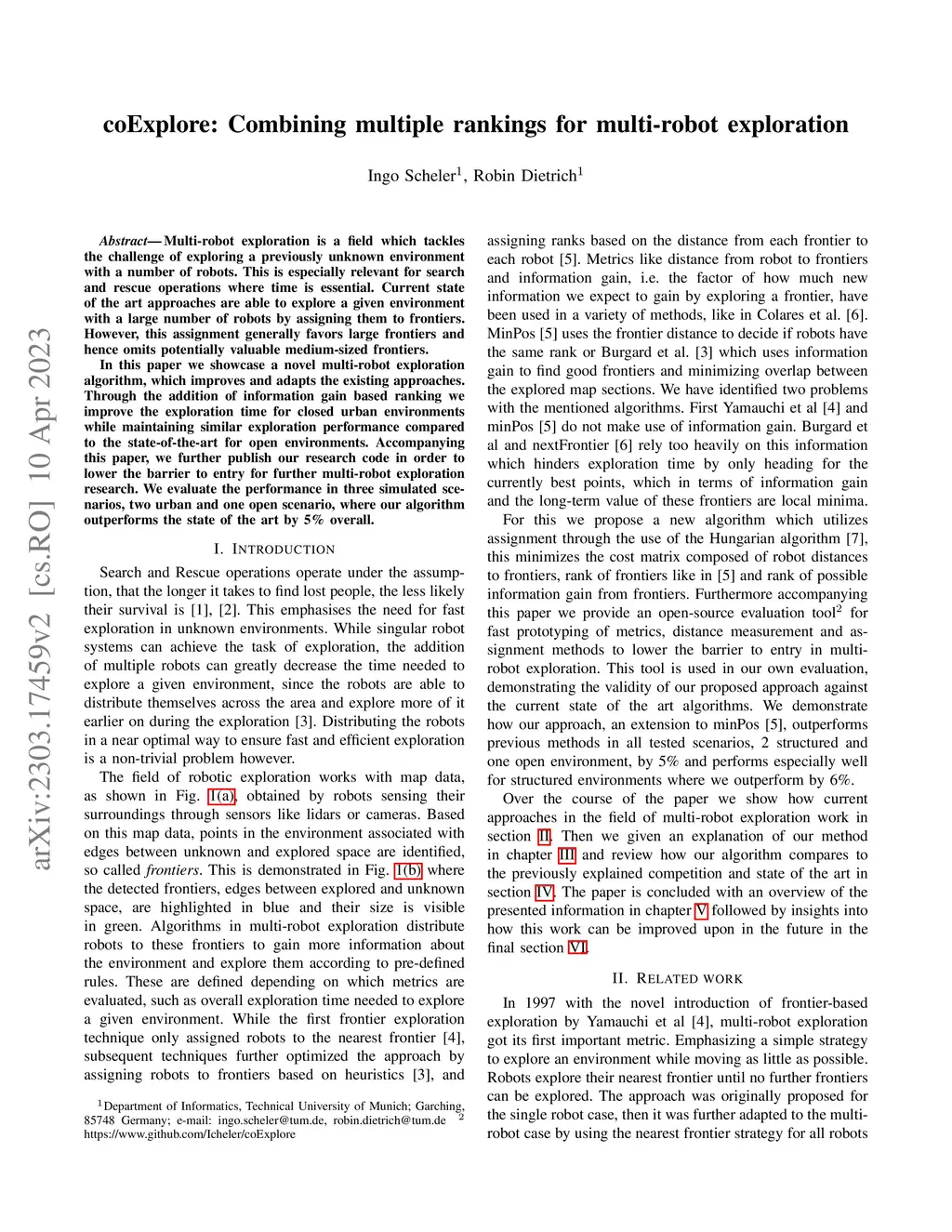 Multi-robot exploration is a field which tackles the challenge of exploring a previously unknown environment with a number of robots. This is especially relevant for search and rescue operations where time is essential. Current state of the art approaches are able to explore a given environment with a large number of robots by assigning them to frontiers. However, this assignment generally favors large frontiers and hence omits potentially valuable medium-sized frontiers. In this paper we showcase a novel multi-robot exploration algorithm, which improves and adapts the existing approaches. Through the addition of information gain based ranking we improve the exploration time for closed urban environments while maintaining similar exploration performance compared to the state-of-the-art for open environments. Accompanying this paper, we further publish our research code in order to lower the barrier to entry for further multi-robot exploration research. We evaluate the performance in three simulated scenarios, two urban and one open scenario, where our algorithm outperforms the state of the art by 5% overall.
