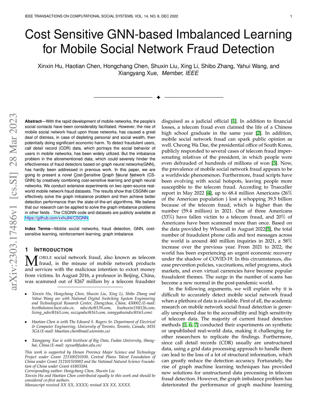 Cost Sensitive GNN-based Imbalanced Learning for Mobile Social Network