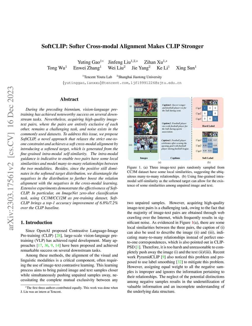 SoftCLIP: Softer Cross-modal Alignment Makes CLIP Stronger