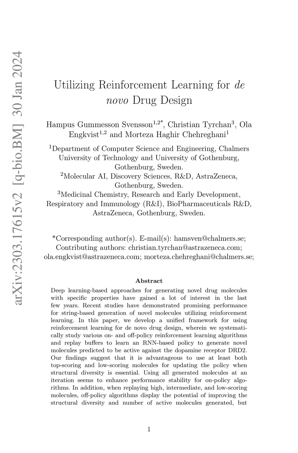Utilizing Reinforcement Learning for de novo Drug Design