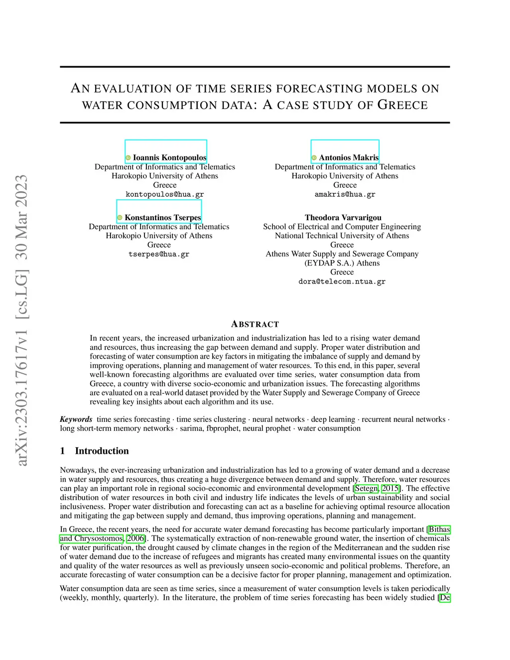 In recent years, the increased urbanization and industrialization has led to a rising water demand and resources, thus increasing the gap between demand and supply. Proper water distribution and forecasting of water consumption are key factors in mitigating the imbalance of supply and demand by improving operations, planning and management of water resources. To this end, in this paper, several well-known forecasting algorithms are evaluated over time series, water consumption data from Greece, a country with diverse socio-economic and urbanization issues. The forecasting algorithms are evaluated on a real-world dataset provided by the Water Supply and Sewerage Company of Greece revealing key insights about each algorithm and its use.