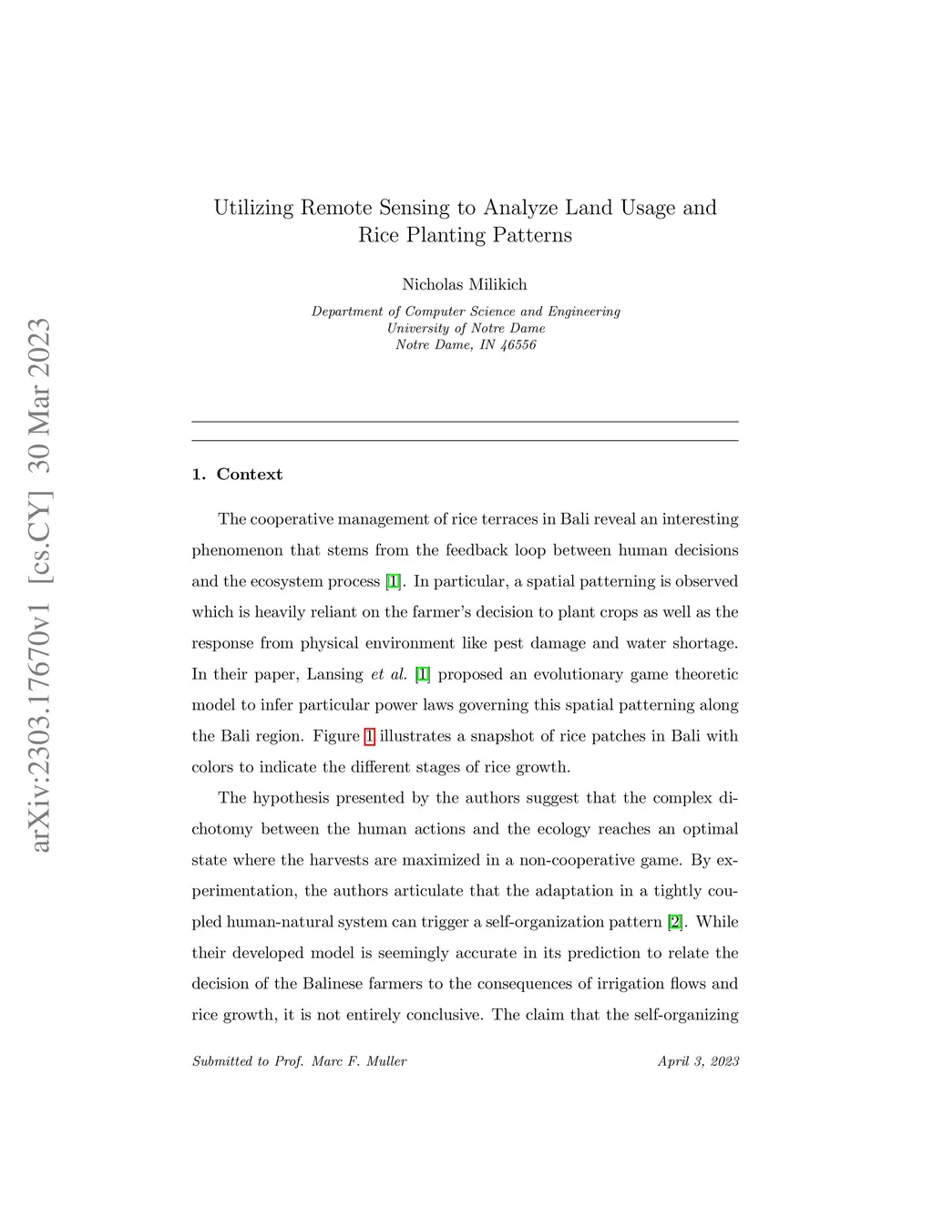 Utilizing Remote Sensing to Analyze Land Usage and Rice Planting