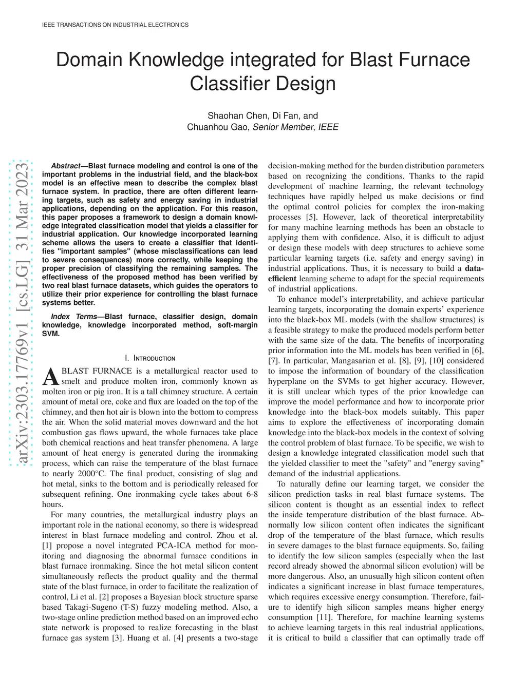 Domain Knowledge integrated for Blast Furnace Classifier Design