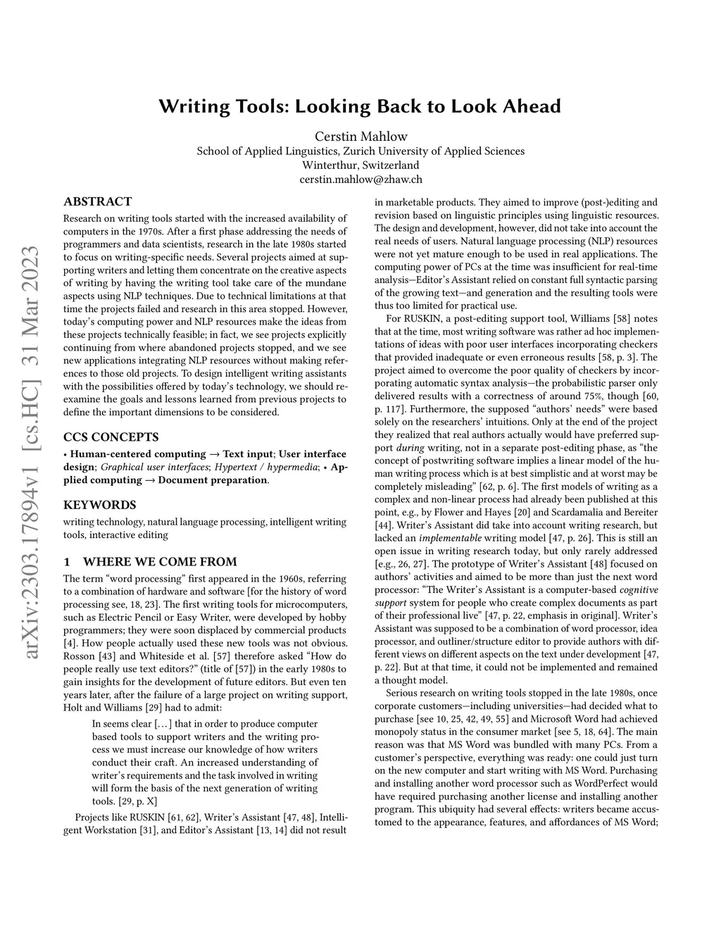 Writing Tools: Looking Back to Look Ahead