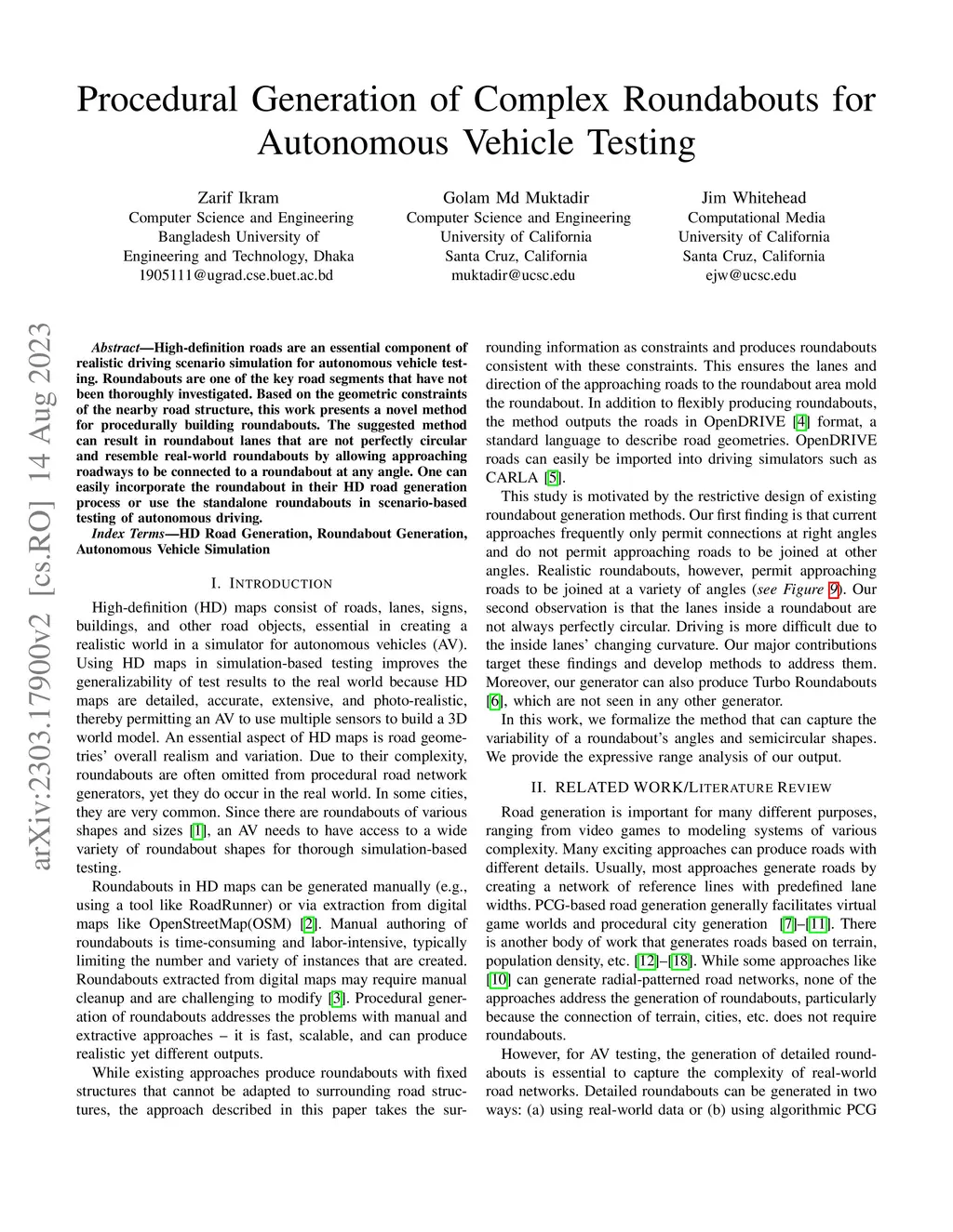 Procedural Generation of Complex Roundabouts for Autonomous Vehicle