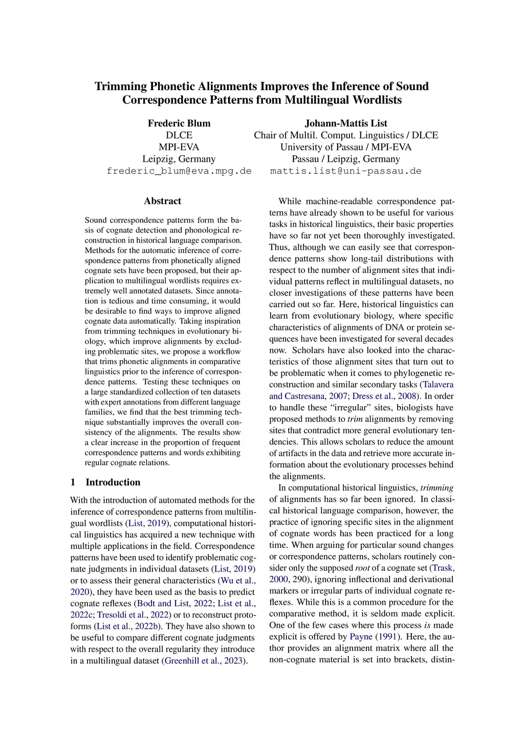 Trimming Phonetic Alignments Improves the Inference of Sound