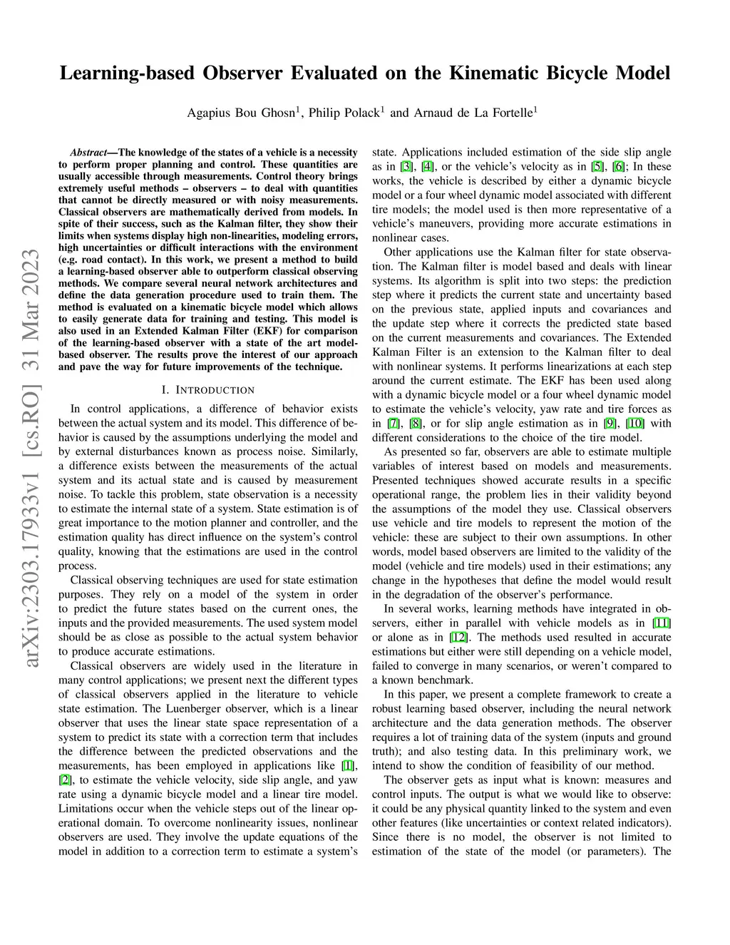 Learning-based Observer Evaluated on the Kinematic Bicycle Model