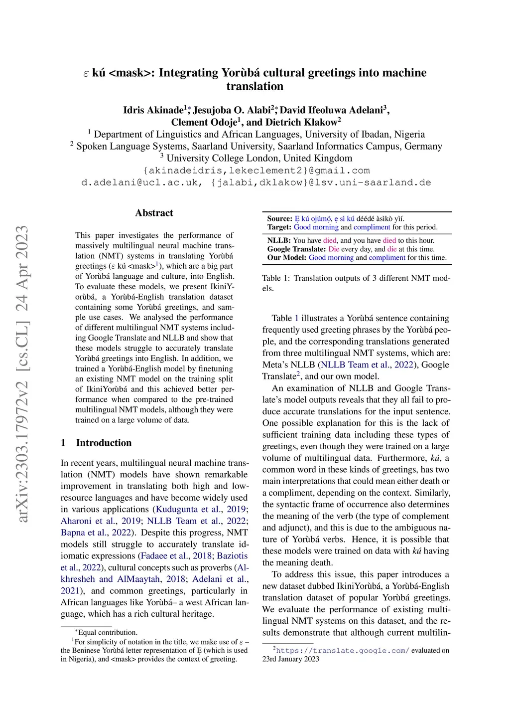 KÚ <MASK>: Integrating Yorùbá cultural greetings