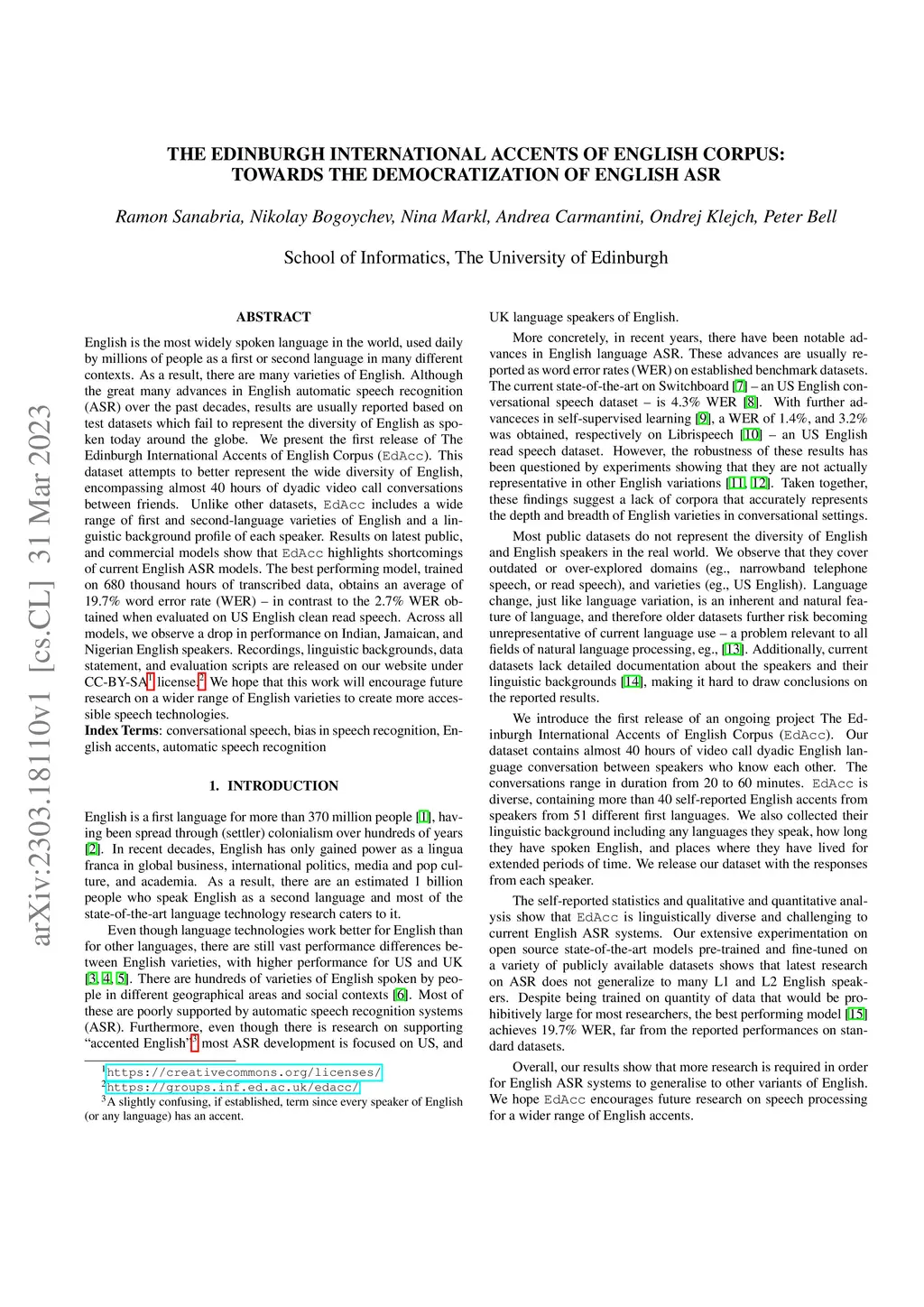 The Edinburgh International Accents of English Corpus: Towards the